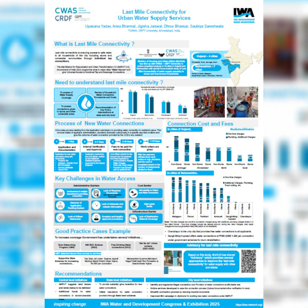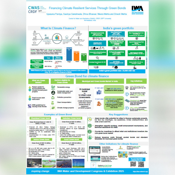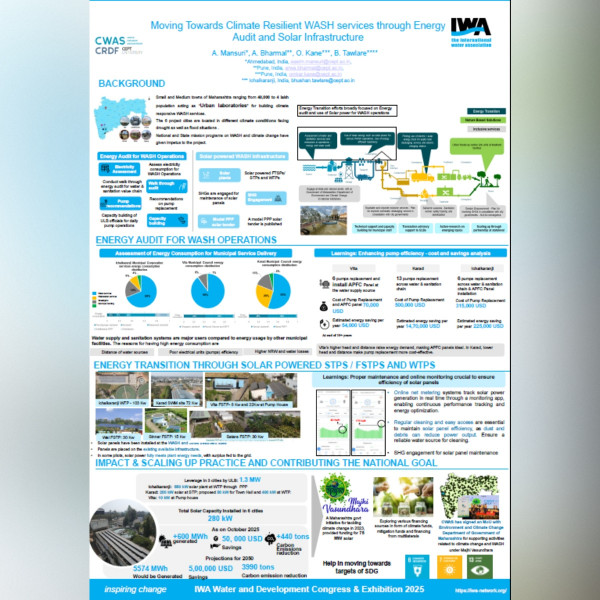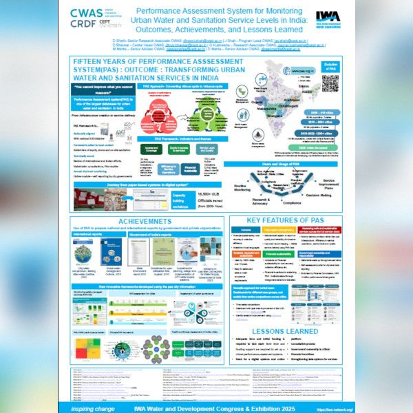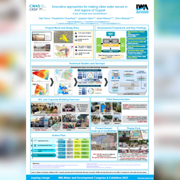 At the congress, Gandhidham Municipal Corporation, supported by CWAS-CRDF received the IWA Climate Smart Utilities award at the IWA Water and Development Congress 2025 for advancing its journey towards climate-resilient water management and Satara Municipal Council, supported by CWAS-CRDF received the IWA Climate Smart Utilities award at the IWA Water and Development Congress 2025.