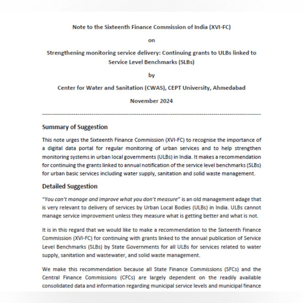 Suggestions to the Sixteenth Finance Commission for Urban Local Bodies